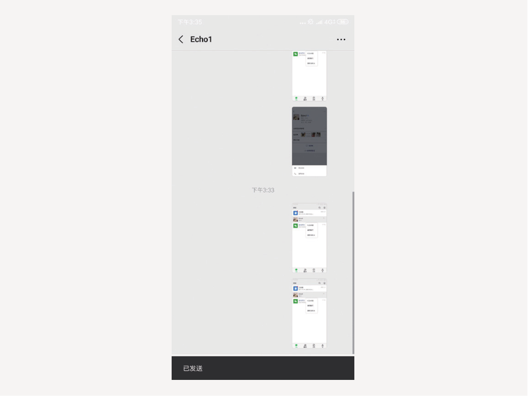 又如,在微信聊天界面中,当用户用微信转发消息并发送成功时,系统会在界面底部显示Snackbar提示并告知用户消息转发成功,如下图所示。